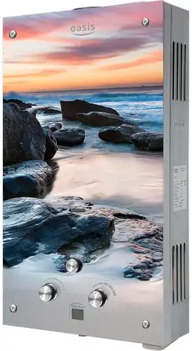 Водонагреватель Oasis Glass 20 MG предназначен для быстрого получения горячей воды в домашних условиях. Он работает на газе и имеет производительность 10 литров в минуту, что подойдет для семьи. Устройство расположено вертикально, его можно крепить на стену, что экономит место. Благодаря регулируемой температуре, вы можете настроить комфортный режим нагрева. В его безопасности предусмотрен термостат и давление до 6 бар, что обеспечивает надежную работу. На дисплее отображается важная информация, а красивый серебристый цвет с рисунком отлично впишется в любой интерьер. Размеры компактные, вес чуть более 7 кг, так что его легко установить и использовать.
