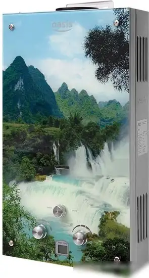 Газовая колонка Oasis Glass 20 VG — это устройство, которое быстро нагревает воду для дома. Она устанавливается на стену и занимает мало места, благодаря своим компактным размерам. Колонка работает на газе и имеет мощность 20 кВт, что обеспечивает производительность до 10 литров горячей воды в минуту. Она оснащена регулировкой температуры, чтобы удобно выбрать нужный уровень нагрева. Для безопасности есть термостат и система защиты от давления до 6 бар. Колонка характеризуется ярким зеленым цветом с рисунком, что делает её привлекательной наружнее.