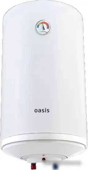 Накопительный электрический водонагреватель Oasis OF-80 подойдет для семьи из трёх человек и дачи. Он устанавливается на стене и работает от однофазной электросети. Вместимость бака составляет 80 литров, что позволяет обеспечить регулярное горячее водоснабжение. Устройство нагревает воду при помощи электричества мощностью 1.5 кВт, достигая температуры до 75°C. Внутреннее покрытие бака выполнено из эмали, а теплоизоляция из пенопласта толщиной 22 мм помогает сохранять тепло длительное время. Встроенный термостат обеспечивает безопасность работы и поддерживает выбранную температуру. В комплект входит монтажный набор, предохранительный клапан и руководство по эксплуатации. Управление водонагревателем осуществляется автоматически без дисплея и удаленного управления. Его компактные размеры позволяют удобно установить в ограниченном пространстве.
