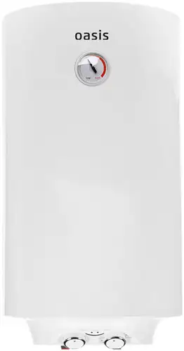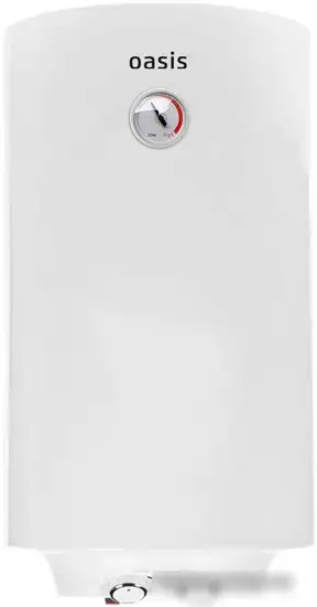 Накопительный электрический водонагреватель Oasis US-50 предназначен для быстрого и надежного нагрева воды в домашних условиях. Он имеет вертикальную конструкцию и объем 50 литров, что идеально подходит для семьи из 2–3 человек. Модель работает от однофазного электропитания мощностью 1.5 кВт и достигает максимально 75°C, легко регулируя температуру. Внутреннее покрытие бака выполнено из эмали, что обеспечивает долговечность и гигиеничность. Теплоизоляция из уретановой пены сохраняет тепло и снижает энергозатраты. Надежность устройства обеспечивает термостат безопасности и давление до 6.5 бар. Габариты компактны – 45x45x56 см, а вес 16.2 кг, что упрощает монтаж и использование.