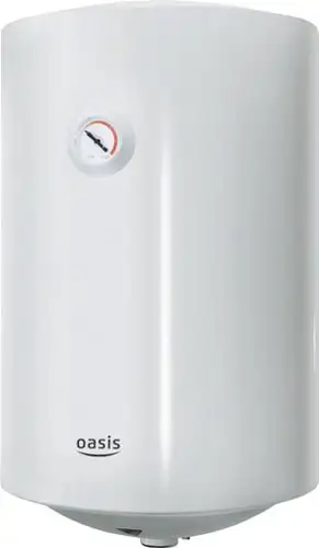 Накопительный электрический водонагреватель Oasis VL-30L предназначен для нагрева воды объёмом 30 литров. Он занимает мало места благодаря вертикальной настенной установке и имеет простую конструкцию с эмалированным баком и теплоизоляцией из пенополиуретана толщиной 20 мм, что помогает сохранять тепло. Максимальная температура нагрева достигает 75 °C, при этом можно удобно регулировать её по своему вкусу. Модель работает на однофазном электричестве мощностью 1.5 кВт и рассчитана на рабочее давление до 7.5 бар. Термостат обеспечивает безопасность, предотвращая перегрев, а встроенные габариты позволяют легко разместить водонагреватель в любую ванную или кухню.