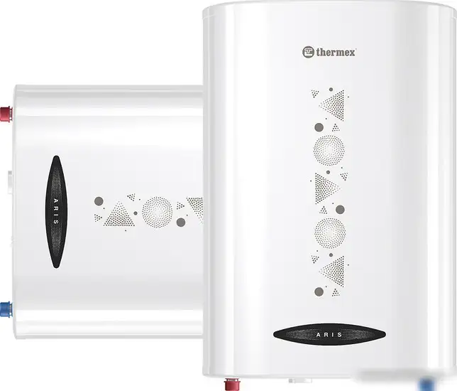 Накопительный электрический водонагреватель Thermex Aris 30 имеет вертикальную, горизонтальную или настенную установку, что позволяет выбрать оптимальный вариант для любой комнаты. Он оснащён сухим ТЭНов InoxDryHeat, который быстро и равномерно нагревает воду, а стёклокерамическое покрытие бака защищает его от повреждений и обеспечивает долговечность. Объём бака составляет 30 литров, что подходит для семьи до двух человек. Мощность устройства — 1,5 кВт, оно нагревает воду до 75 °C за 50 минут и позволяет регулировать температуру по необходимости. В водонагревателе есть дисплей, показывающий текущие параметры, а также встроенные системы безопасности — термостат, УЗО и предохранительный клапан. Сам корпус выполнен в белом цвете и легко устанавливается благодаря комплекту анкеров. Он рассчитан на работу при давлениях до 7 бар, что делает его безопасным для домашнего использования. Внутри установлен патрубок для подключения воды с подводкой справа или снизу, что удобно для монтажа.