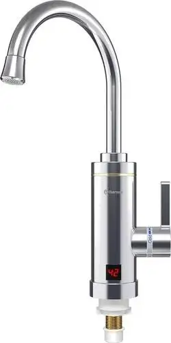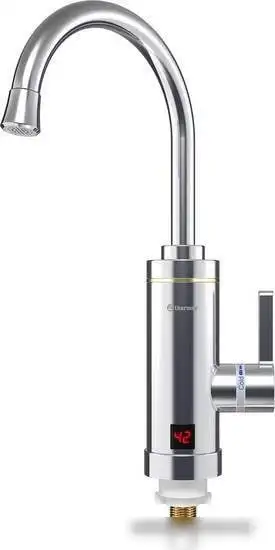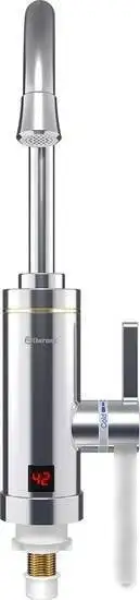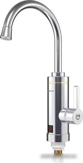 Проточный электроводонагреватель-кран Thermex Corunna 3000 — компактное устройство, которое быстро нагревает воду прямо во время её использования. Он работает от однофазной электросети и имеет мощность 3 кВт, что обеспечивает хорошую производительность — до 1,8 литров горячей воды в минуту. Этот водонагреватель легко регулирует температуру, позволяя установить комфортный уровень тепла. В комплект входит металлический смеситель, УЗО для безопасности, а также руководство по эксплуатации. Устройство оснащено дисплеем, что облегчает контроль работы и настройку. Благодаря регулируемому термостату и встроенной защите, оно безопасно и надежно в использовании. Его размеры очень компактны: всего 10×18×35 см, а вес — лишь 1,4 кг, что делает его удобным для установки в малых пространствах.