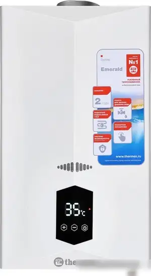 Газовая колонка Thermex Emerald E 22 MD предназначена для быстрого нагрева воды. Она устанавливается вертикально и крепится на стену, что экономит место. Колонка работает на газе и подключается к электросети однимфазным напряжением. Производительность составляет 11 литров горячей воды в минуту, а мощность — 22 кВт, что позволяет получать воду быстро и стабильно. Устройство регулирует температуру и поддерживает выбранные настройки, обеспечивая комфорт и безопасность. Термостат безопасности и дисплей помогают контролировать работу колонки и предотвращают неожиданные ситуации. Колонка рассчитана на давление до 7,5 бар и оснащена долговечной теплоизоляцией для сохранения тепла. В комплект входит водонагреватель, крепёж и руководство пользователя. Ее вес всего 9,7 кг, а габариты — 35х18,8х61 см, что делает её удобной для установки в различных помещениях.