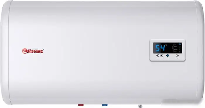 Накопительный электрический водонагреватель Thermex IF 50 H (pro) предназначен для подачи горячей воды в домашних условиях. Он имеет объем 50 литров и работает от однофазной электросети с мощностью 2 кВт. Устройство устанавливается на стену и занимает немного места благодаря горизонтальной и настенной конструкции. Внутри бака используется нержавеющая сталь, а теплоизоляция из пенополиуретана помогает сохранять тепло долгое время. Максимальная температура нагрева достигает 75 °C, и её легко регулирует термостат. Безопасность обеспечивается за счет защиты от давления до 7 бар и дисплея для контроля температуры.