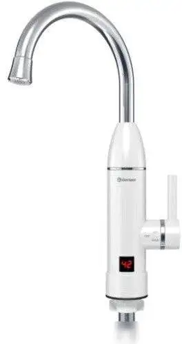 Проточный электрический водонагреватель-кран Thermex Nix 3000 предназначен для нагрева воды прямо у вас на кухне или умывальнике. Он устанавливается на мойку или столешницу и легко управляется без удалённого пульта. Модель работает на электросети и обеспечивает нагрев воды с мощностью 3 кВт, что позволяет быстро подавать горячую воду. Производительность составляет примерно 1.7 литра в минуту при температуре 25 градусов. Водонагреватель оснащён регулятором температуры, что позволяет подобрать комфортный уровень нагрева. Он совместим с высоким давлением до 7 бар и имеет дисплей для удобства контроля. Компактный дизайн и лёгкий вес делают его простым в установке и использовании.