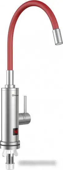 Проточный электрический водонагреватель-кран Thermex Ruby 3000 предназначен для нагрева воды прямо у вас на кухне или умывальнике. Он устанавливается на мойку или столешницу и работает по электросхеме однофазного питания мощностью 3 кВт. Устройство позволяет регулировать температуру воды, что помогает выбрать комфортную для вас температуру. Производительность составляет от 1.2 до 1.7 литров в минуту, что достаточно для ежедневных нужд. В комплект входит металлический смеситель, а также устройство защиту от утечек тока — УЗО и термостат безопасности. У водонагревателя есть дисплей, который показывает текущие настройки, а его компактные размеры позволяют легко установить его в небольшом пространстве.