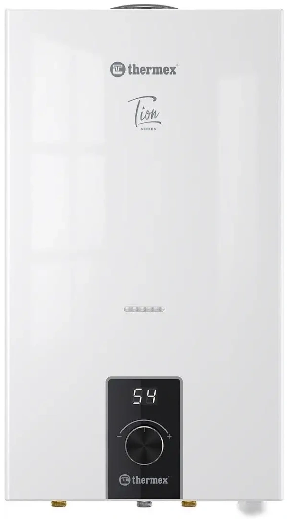 Газовая колонка Thermex T 26 D — это устройство, которое нагревает воду с помощью газа. Она устанавливается на стену в вертикальном положении, занимает мало места и легко интегрируется в любую ванную или кухню. Колонка обеспечивает горячую воду с производительностью 13 литров в минуту и мощностью 26 кВт для быстрого нагрева. Регулировка температуры позволяет настроить комфортный уровень горячей воды. Устройство оснащено дисплеем, который показывает текущие параметры работы и обеспечивает удобство управления. Давление в системе не превышает 8 бар, что обеспечивает безопасность работы. Колонка работает без удаленного управления, что упрощает использование. Ее размеры — шириной 40 см, глубиной 18 см и высотой 65 см, а вес — около 10 кг. Она отлично подходит для тех, кто хочет быстро получать горячую воду и следит за безопасностью и простотой эксплуатации.