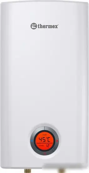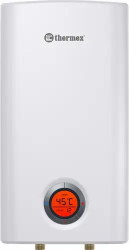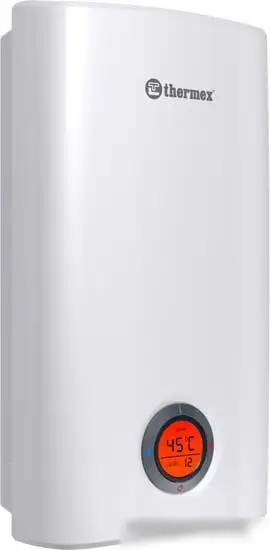Проточный электрический водонагреватель Thermex Topflow Pro 24000 предназначен для быстрого нагрева воды с помощью электроэнергии. Он устанавливается вертикально на стену и подходит для разных помещений. Модель обеспечивает производительность от 9,8 до 13,8 литров в минуту, что позволяет использовать воду сразу в нескольких точках. Регулировка температуры и задание конкретных параметров помогают настроить комфортный режим. Водонагреватель изготовлен из нержавеющей стали, что делает его долговечным и безопасным в эксплуатации. Благодаря встроенному дисплею легко контролировать текущие настройки и следить за безопасностью. Этот прибор не имеет сухого ТЭНа и рассчитан на давление до 1 бара, что обеспечивает его стабильную работу в домашних условиях.