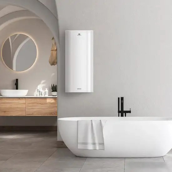 Этот электрический накопительный водонагреватель Timberk Optima T-WSS80-FS47-V предназначен для использования в домашних условиях и легко устанавливается на стену. Он имеет объем 80 литров, что подходит для семьи из 3–4 человек. Нагреватель работает от однофазной электросети мощностью 2 кВт и способен нагревать воду до 75°C за 112 минут. Благодаря внутрянему баку из нержавеющей стали, он служит долго и не ржавеет. Управление осуществляется простым регулированием температуры, а давление внутри бачка выдерживает до 6 бар. Его компактные размеры позволяют легко разместить в любой комнате дома.