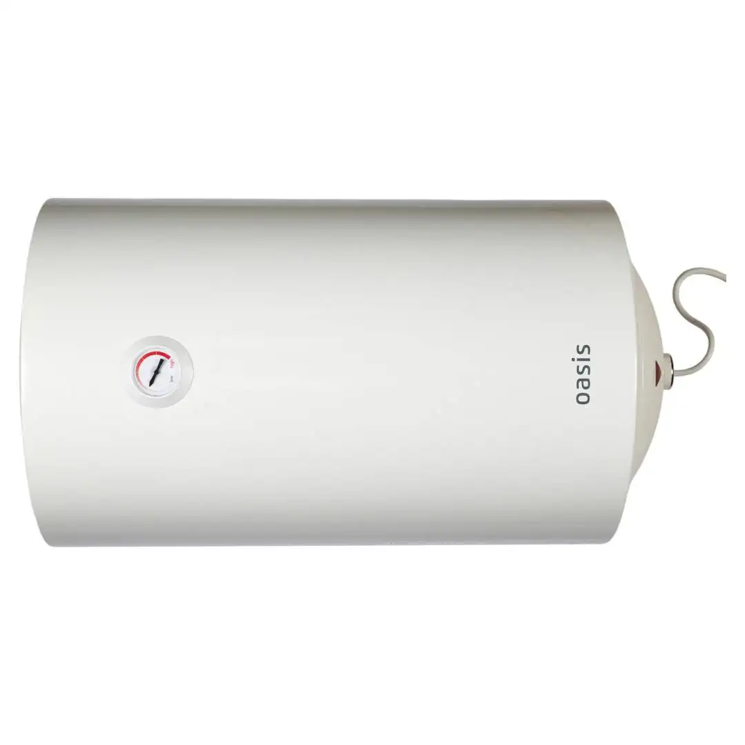 Накопительный электрический водонагреватель Oasis VL-80L предназначен для нагрева воды и имеет объем 80 литров, что подходит для семьи. Его расположение — вертикальное и настенное, что экономит место в помещении. Аппарат работает на однофазном электропитании и обладает мощностью 1,5 кВт, обеспечивая быструю подачу горячей воды. Встроенный термостат позволяет регулировать температуру до 75°C, а теплоизоляция из пенополиуретана сохраняет тепло и снижает энергозатраты. Конструкция не включает сухой ТЭН и смеситель, поэтому требует подключения к внешней системе водопровода. Габариты компактны: ширина 45 см, глубина 45 см и высота 75.4 см, а вес около 24 кг.