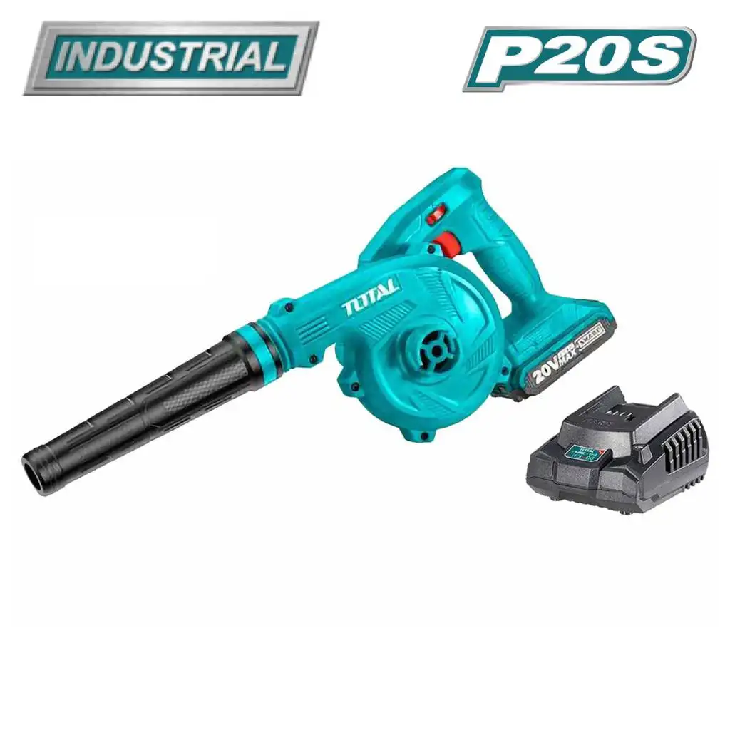 Ручная воздуходувка Total TABLI200181 — аккумуляторная воздуходувка без функции пылесоса, рассчитана на удаление пыли и мелкого мусора с поверхностей. Работает от литий-ионного аккумулятора 20 В емкостью 2 Ач; в комплект входит аккумулятор и зарядное устройство. Расход воздуха составляет 2.7 куб.м/мин, скорость воздуха 38 м/с, вес — 1.8 кг, что обеспечивает удобство использования одной рукой. В комплект входят круглая насадка и труба.