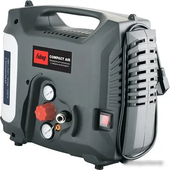 Компрессор Fubag Compact Air — это переносное устройство мощностью 1,3 кВт, которое легко находит применение для накачки и работы с пневмосистемами. Он работает безмасляно, что исключает необходимость обслуживания маслом и обеспечивает чистую работу. Модель оснащена 5-литровым ресивером, что позволяет хранить сжатый воздух для стабильной работы. Максимальное давление достигает 10 атмосфер, а производительность — 180 литров в минуту. Компактные размеры (410x165x370 мм) и вес 8,5 кг делают его удобным для переноски и хранения. В комплект входит пневмошланг, сопла, наконечники и пневмополотно для различных работ, включая накачивание с манометром и продувку. Устройство подключается к стандартной электросети 220 В и легко перемещается благодаря передвижной конструкции. Компрессор идеально подойдет для домашних ремонтов, обслуживания автомобиля и других задач, где нужен качественный сжатый воздух.