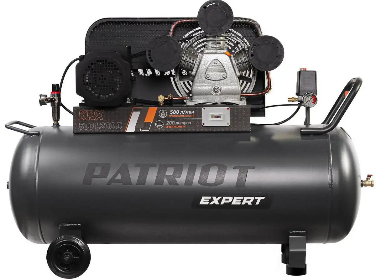 Компрессор Patriot KRX 580 L200 D — это мощное устройство с поршневым электродвигателем, которое работает на масляной смазке. Его 3-киловаттный двигатель обеспечивает высокую производительность — до 580 литров сжатого воздуха в минуту при максимальном давлении 10 атмосфер. Ресивер емкостью 200 литров позволяет долгое время использовать сжатый воздух без перебоев. Он легко передвигается благодаря колесам и амортизаторам, что облегчает транспортировку по рабочему месту. Корпус выполнен в салатовом цвете, что делает его заметным и современным. Комплектация включает воздушные фильтры, колесные базы и инструкцию для быстрой установки. Вес устройства составляет около 120 кг, оно предназначено для профессионального использования. Благодаря высокой мощности и надежной конструкции, этот компрессор подходит для различных производственных задач и обслуживания оборудования.