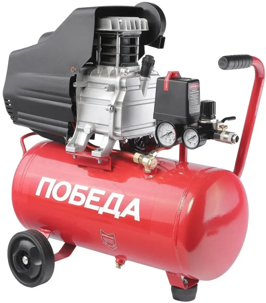 Компрессор Победа KM 24-230 — это мощное портативное устройство с поршневым типом и электродвигателем, работающим на масляной смазке. Он оснащён 24-литровым ресивером, что обеспечивает стабильное давление и продолжительную работу. Мощность компрессора составляет 1,5 кВт, а производительность на входе — 230 л/мин, что позволяет быстро выполнять задачи. Максимальное давление достигает 8 атм, его хватает для большинства бытовых и профессиональных работ. Конструкция с одним цилиндром и одним уровнем мощности делает работу компрессора простой и надёжной. Он работает тихо — уровень шума составляет 76 дБ, что комфортно для пользователя. Передвижная конструкция с колесами и амортизатором облегчает перемещение и использование. В комплект входят воздушный фильтр, два колеса, сапун и амортизатор, что повышает удобство и эффективность эксплуатации. Размеры и вес позволяют легко транспортировать устройство и хранить его в ограниченном пространстве. Это надёжный выбор для тех, кто ищет мощный и функциональный компрессор для различных задач.