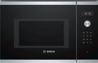 Микроволновая печь Bosch BEL554MS0 встраивается в кухонный шкаф и выполнена из нержавеющей стали и черного цвета. Объем устройства составляет 25 литров, а мощность – 1 450 Вт, что позволяет быстро и равномерно разогревать или готовить блюда. У печи есть 5 уровней мощности и электронное управление с ярким светодиодным экраном, что облегчает настройки. Встроенные автоматические программы помогают быстро приготовить пищу или разморозить продукты без лишних усилий. Поворотный стол диаметром 315 мм обеспечивает равномерное приготовление. Дверца распашного типа открывается нажатием кнопки и имеет прочную конструкцию из нержавеющей стали. Внутренние стенки легко чистить благодаря нержавеющему покрытию. Устройство сохраняет пользовательские программы и имеет функцию быстрого запуска для удобства. В комплект входит решетка для гриля, что расширяет возможности использования данной микроволновой печи.