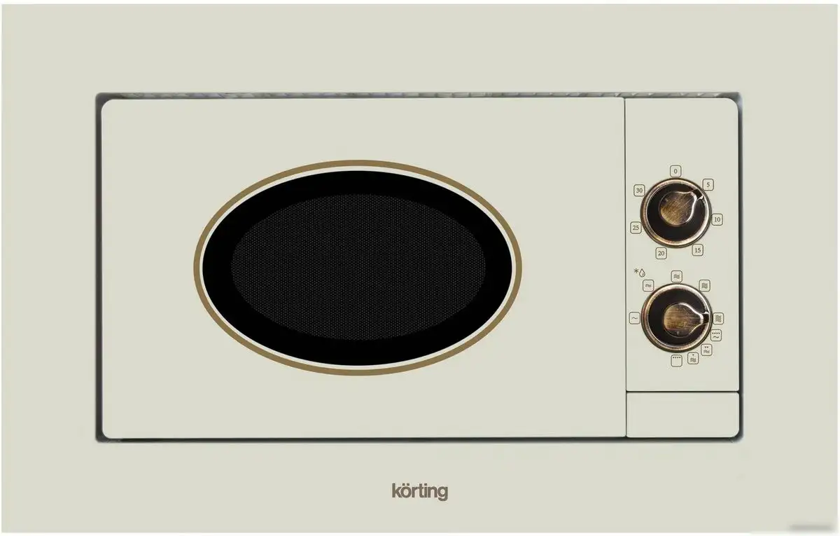 встраиваемая, микроволны и гриль, объем 20 л, выходная мощность микроволн 700 Вт, управление механическое, цвет бронзовый/слоновая кость