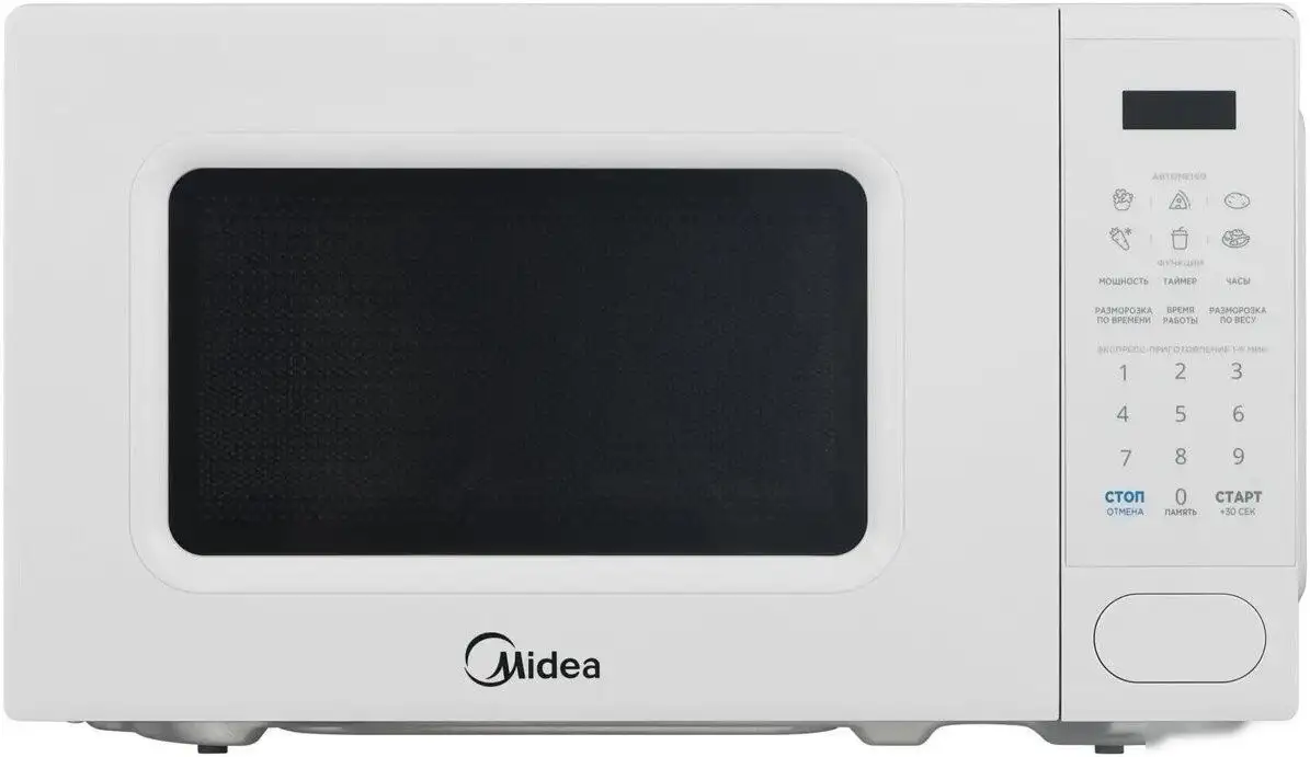 отдельностоящая, микроволны (соло), объем 20 л, выходная мощность микроволн 700 Вт, управление электронное, автоприготовление, авторазмораживание, цвет белый