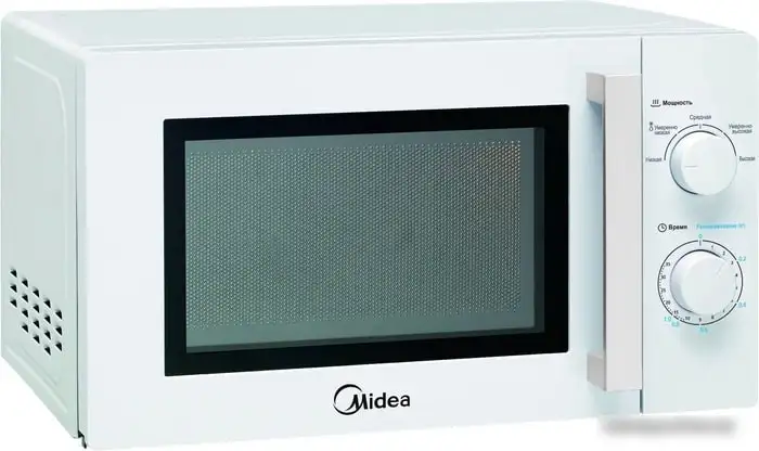 Микроволновая печь Midea MM720CY6-W имеет объем 20 литров и подходит для быстрого разогрева и приготовления пищи. Она работает с мощностью 700 Вт и обладает пятью уровнями мощности, что дает возможность регулировать тепло в зависимости от блюда. Дверца распашного типа с ручкой удобна в использовании. Внутренние стенки покрыты эмалью, что облегчает их чистку. Управление механическое, без лампочек или дисплеев, так что управлять очень просто. Есть поворотный стол, который помогает равномерно нагревать еду. Она занимает мало места благодаря компактным габаритам и весит всего 10 кг.