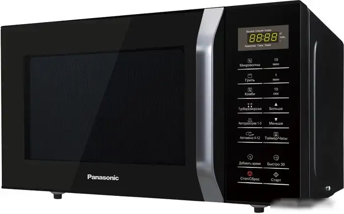 Микроволновая печь Panasonic NN-GT35HBZPE — это удобный настенный или отдельностоящий прибор в черном цвете с объемом 23 литра. Она сочетает функцию микроволн и гриля, что позволяет быстро разогревать пищу и готовить блюда по разным программам. Мощность микроволн составляет 800 Вт, а гриля — 1000 Вт, что обеспечивает быстрый и равномерный результат. Управление происходит при помощи электронного сенсорного экрана, а есть также блокировка от детей и таймер. В устройства есть 12 автоматических программ, включая размораживание и разогрев, что делает процесс приготовления удобным и быстрым. Поворотный стол диаметром 288 мм облегчает приготовление и перемещение продуктов внутри микроволновки.