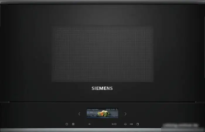 Микроволновая печь Siemens iQ700 BE732L1B1 — это встроенное устройство черного цвета с объемом 21 литр. Она сочетает функции микроволн и гриля, что позволяет быстро разогревать и готовить разнообразные блюда. Модель оснащена сенсорным управлением и ЖК-экраном, удобным для выбора программ и настройки температуры. В печи есть блокировка от детей и отложенный старт, что делает ее безопасной и удобной в использовании. Особенностью является инверторная технология, которая обеспечивает равномерное приготовление и энергоэффективность.
