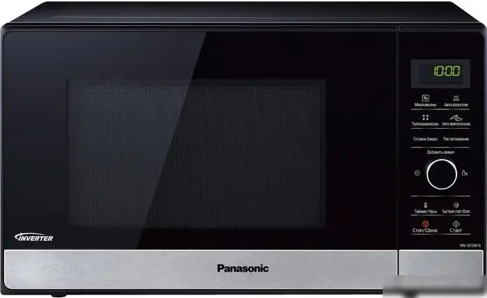 Микроволновая печь Panasonic NN-SD38HS выполнена в современном стиле из нержавеющей стали и черного цвета. Она обладает объемом 23 литра и мощностью 1000 Вт, что позволяет быстро разогреть или приготовить пищу. Управление электронное с светодиодным экраном делает работу удобной, а блокировка для детей обеспечивает безопасность. Устройство оснащено 16 автоматическими программами для приготовления, размораживания и разогрева, а также функцией быстрого старта и отложенным стартом до 1.5 часов. Поворотный стол диаметром 285 мм облегчает равномерное нагревание блюд. Эмаль внутри легко чистится и долго сохраняет свежий вид. Модель проста в использовании и идеально подходит для домашнего использования, сочетая функциональность и стиль.
