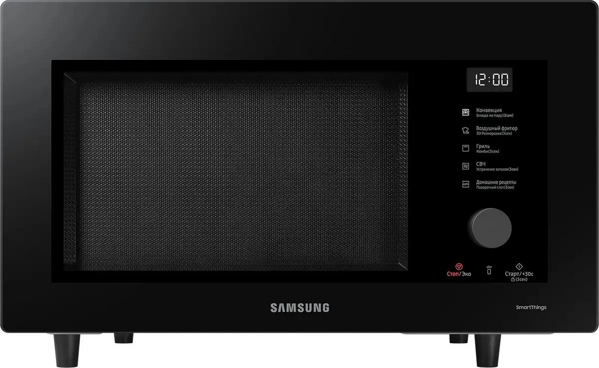 Микроволновая печь Samsung MC32DG7646KKBW обладает объемом 32 литра и подходит для приготовления различных блюд. Она совмещает функции микроволн, гриля и конвекции, что позволяет готовить быстрее и разнообразнее. Управление осуществляется с помощью электронного сенсорного экрана, есть встроенные программы автоматического приготовления и размораживания, а также функция быстрого старта. Внутри есть решетка для гриля и пароварка, что расширяет возможности готовки. Стеклянная дверца с откидывающимся механизмом легко открывается, а внутреннее покрытие стенок — био-керамическое, что упрощает уборку. Также есть возможность удаленного управления через Wi-Fi и функция удаления запахов для поддержания чистоты внутри.