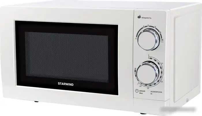 Микроволновая печь StarWind SMW3820 — это удобный и простой в использовании прибор для приготовления пищи. Она выполнена в белом цвете и предназначена для отделения от стоя, что делает её легко размещаемой в любой кухне. Объем камеры составляет 20 литров, а мощность потребления — 1200 Вт, благодаря чему еда быстро нагревается и размораживается. Микроволновка имеет 6 уровней мощности и кнопку для открытия дверцы с распашным механизмом. Внутри стенки покрыты эмалью, что облегчает очистку. Устройство поддерживает автоматические программы размораживания по весу и удобно управляется механическим регулятором. Размеры микроволновой печи позволяют легко разместить её на кухонной поверхности, а вес в 10.8 кг делает перенос простым и удобным.