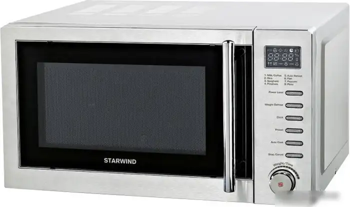 Микроволновая печь StarWind SMW5220 — это устройство в нержавеющей steel с объемом 20 литров и мощностью 700 Вт. Она имеет распашную дверцу с ручкой и внутри покрыта эмалью, которая легко очищается. Управление происходит при помощи электронного экрана со светодиодной индикацией. В приборе есть 8 автоматических программ для быстрого приготовления и разогрева еды. Для удобства есть функция часов и возможность установить отложенный старт. Внутри есть поворотный стол, который помогает равномерно прогревать пищу. Эта модель проста в использовании и хорошо подходит для ежедневного приготовления.