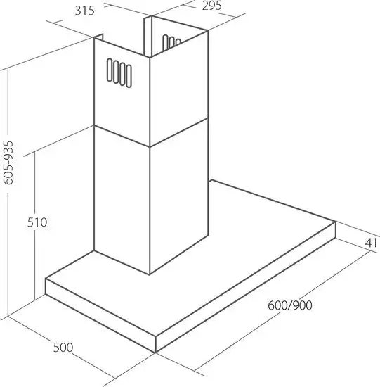 конструкция Т-образная, монтаж настенный, ширина 60 см, управление сенсорное, производительность мотора 1050 м×/ч, цвет нержавеющая сталь/черный