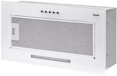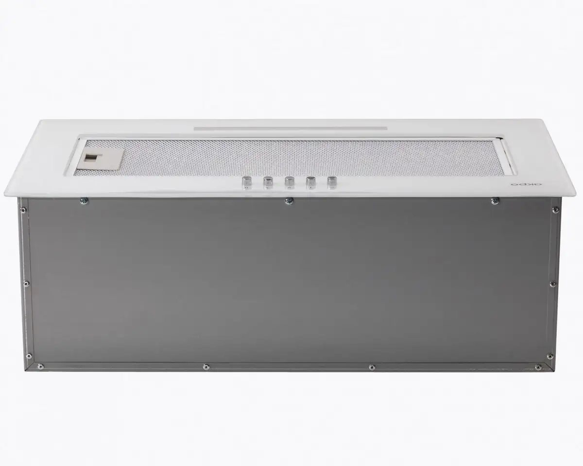 конструкция скрытая, монтаж для встраивания, ширина 53 см, управление механическое/кнопочное, производительность мотора 1080 м×/ч, цвет белый