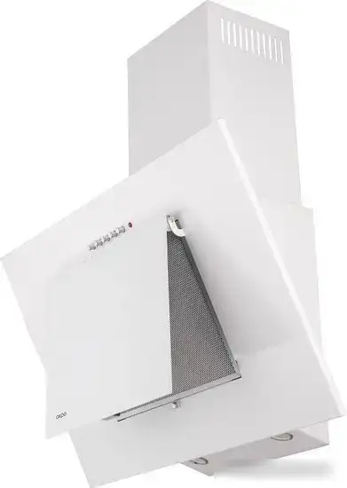 конструкция наклонная, монтаж настенный, ширина 90 см, управление механическое/кнопочное, производительность вытяжки 850 м×/ч, цвет белый