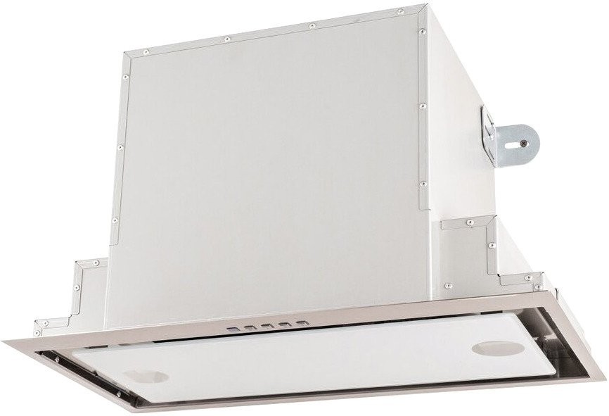 конструкция скрытая, монтаж для встраивания, ширина 53 см, управление кнопочное, производительность мотора 1100 м×/ч, цвет белый