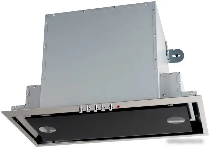 конструкция скрытая, монтаж для встраивания, ширина 53 см, управление механическое/кнопочное, производительность мотора 1100 м3/ч, цвет нержавеющая сталь/черный