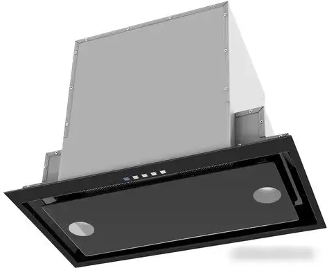 конструкция скрытая, монтаж для встраивания, ширина 53 см, управление электронное/кнопочное/дистанционное, производительность мотора 1250 м×/ч, цвет черный