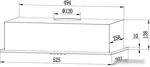 конструкция скрытая, монтаж для встраивания, ширина 52.5 см, управление механическое/кнопочное, производительность мотора 600 м3/ч, цвет черный