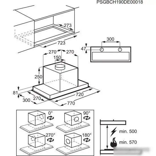конструкция скрытая, монтаж настенный/для встраивания, ширина 77 см, управление электронное/кнопочное, производительность вытяжки 580 м×/ч, цвет белый/черный