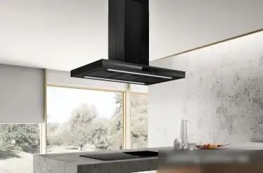 конструкция Т-образная, монтаж островной, ширина 90 см, управление сенсорное, производительность вытяжки 420 м×/ч, производительность мотора 1300 м×/ч, цвет черный