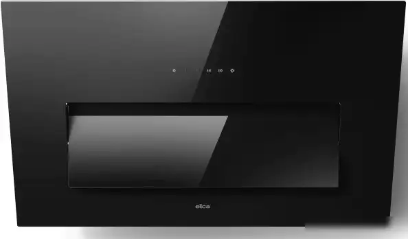 конструкция наклонная, монтаж настенный, ширина 85 см, управление сенсорное, производительность вытяжки 400 м×/ч, цвет черный