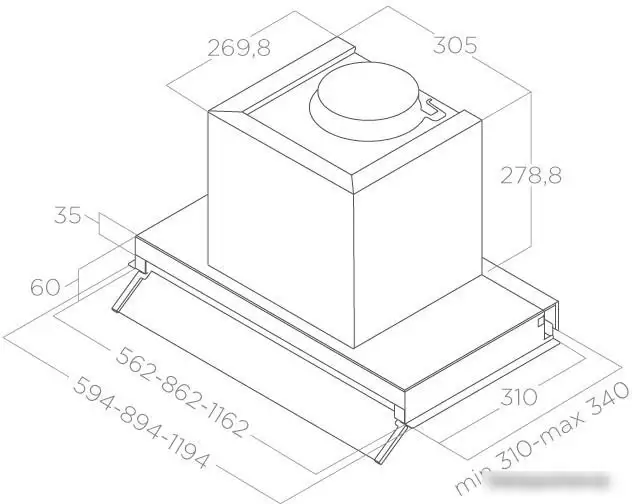 конструкция скрытая, монтаж для встраивания, ширина 59.4 см, управление поворотный переключатель, производительность вытяжки 370 м3/ч, производительность мотора 750 м3/ч, цвет нержавеющая сталь