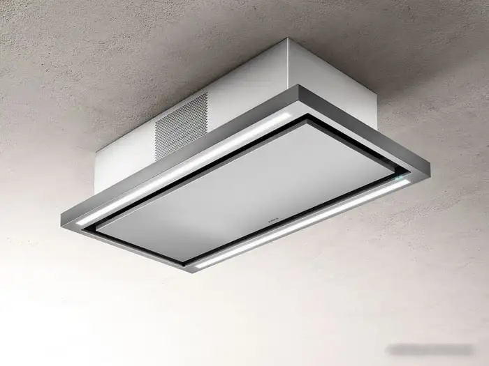 конструкция коробчатая, монтаж островной, ширина 89.9 см, управление электронное, производительность вытяжки 460 м3/ч, производительность мотора 1500 м3/ч, цвет нержавеющая сталь