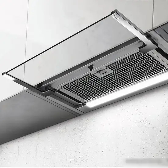 конструкция телескопическая, монтаж для встраивания, ширина 59.7 см, управление сенсорное, производительность вытяжки 432 м3/ч, производительность мотора 1000 м3/ч, цвет нержавеющая сталь