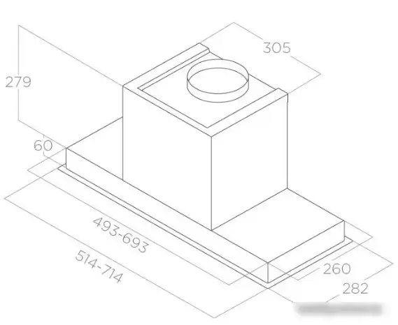 конструкция скрытая, монтаж для встраивания, ширина 71.4 см, управление электронное/кнопочное, производительность вытяжки 600 м3/ч, производительность мотора 1300 м3/ч, цвет белый/нержавеющая сталь