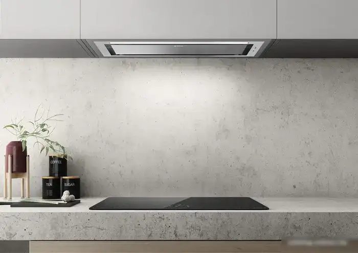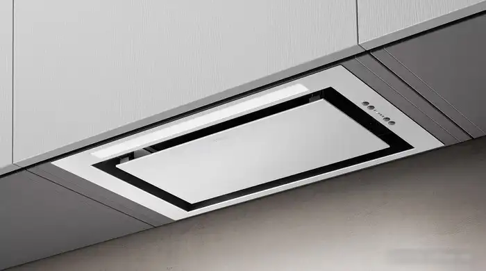 конструкция скрытая, монтаж для встраивания, ширина 51.4 см, управление электронное/кнопочное, производительность вытяжки 690 м×/ч, цвет нержавеющая сталь