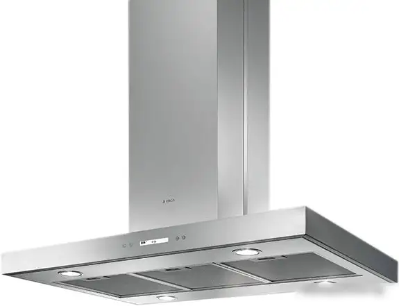 конструкция Т-образная, монтаж островной, ширина 90 см, управление электронное/кнопочное, производительность вытяжки 448 м3/ч, производительность мотора 1200 м3/ч, цвет нержавеющая сталь