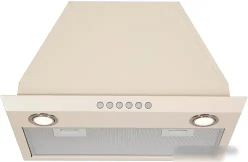 конструкция скрытая, монтаж для встраивания, ширина 52.2 см, управление механическое/кнопочное, производительность мотора 1000 м3/ч, цвет кремовый
