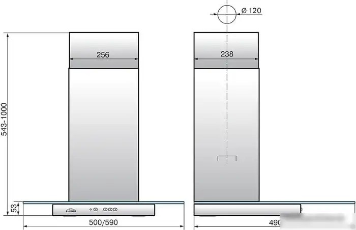 конструкция Т-образная, монтаж настенный, ширина 60 см, управление механическое/кнопочное, производительность мотора 430 м3/ч, цвет нержавеющая сталь