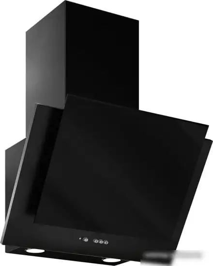 конструкция наклонная, монтаж настенный, ширина 59 см, управление механическое/кнопочное, производительность мотора 650 м3/ч, цвет черный