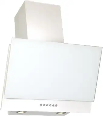 конструкция наклонная, монтаж настенный, ширина 59 см, управление электронное/кнопочное, производительность мотора 700 м3/ч, цвет белый