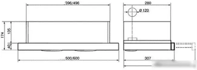 конструкция телескопическая, монтаж для встраивания, ширина 50 см, управление механическое/кнопочное, производительность мотора 1000 м×/ч, цвет черный